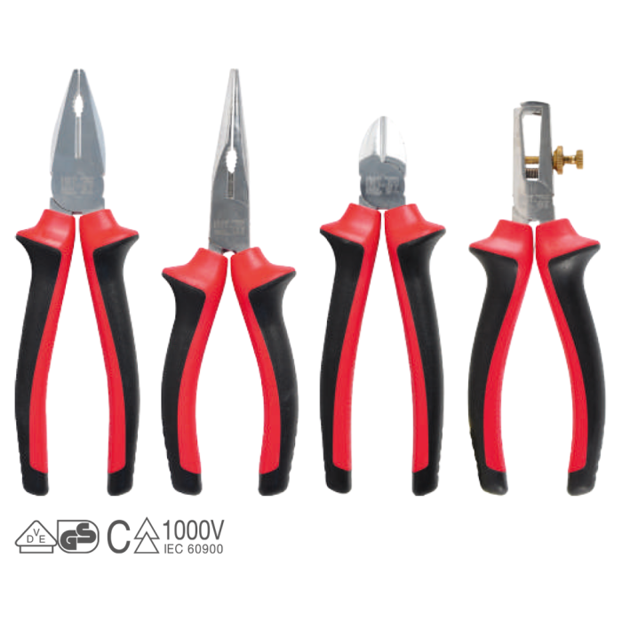Jeu de 4 pinces VDE 1000V certifiées IEC 60900, idéal pour les électriciens.