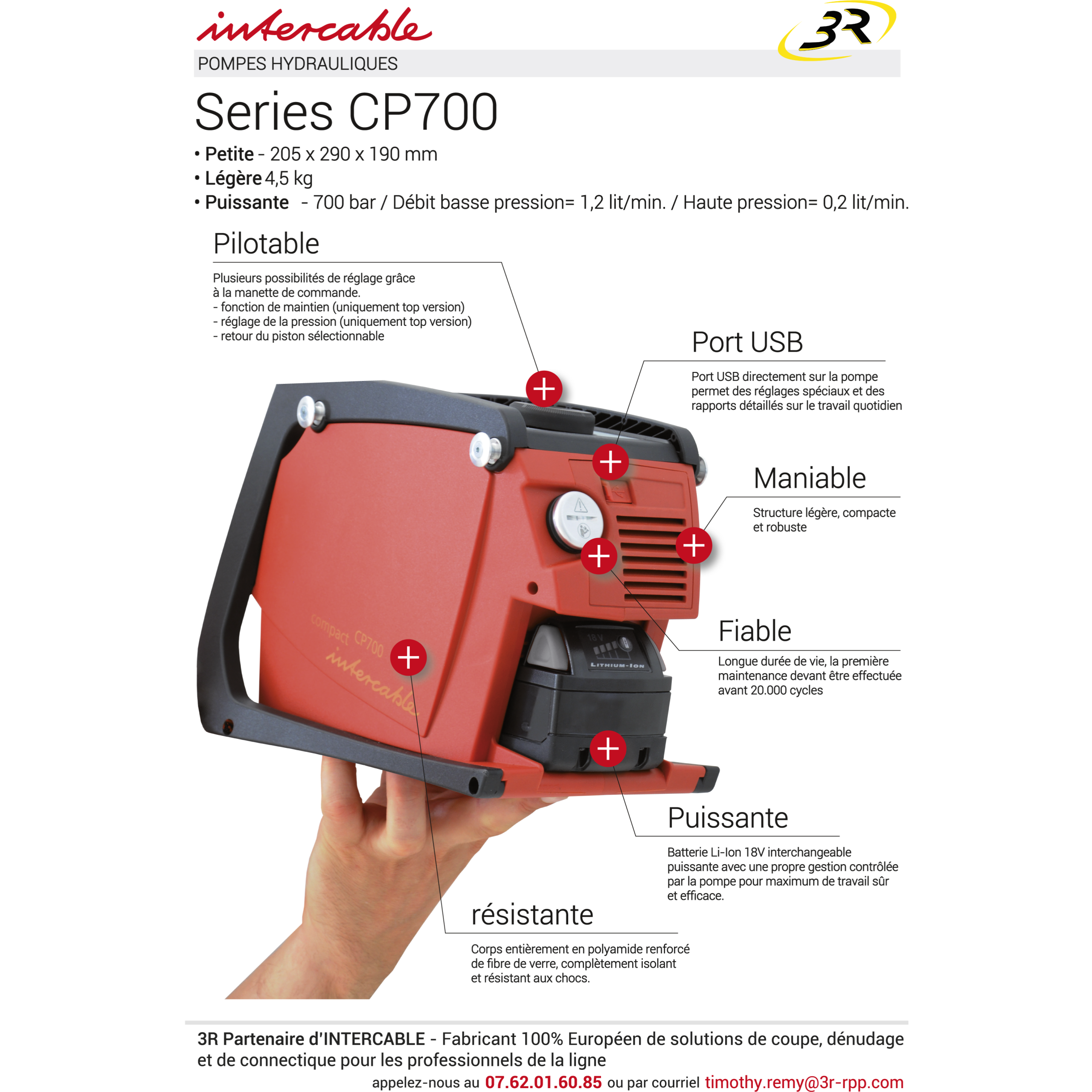 CP700 – Pompe hydraulique sur batterie compacte avec écran Intercable