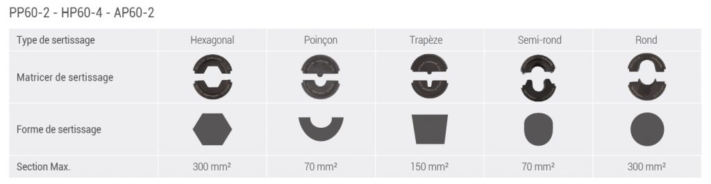 Convient pour le sertissage des câbles cuivre et aluminium jusqu’à section maxi 300mm²